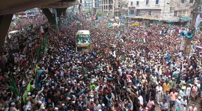 হামদ, নাতে রাসূল, দরুদ ও স্লোগানে কণ্ঠ মেলাচ্ছেন তারা।